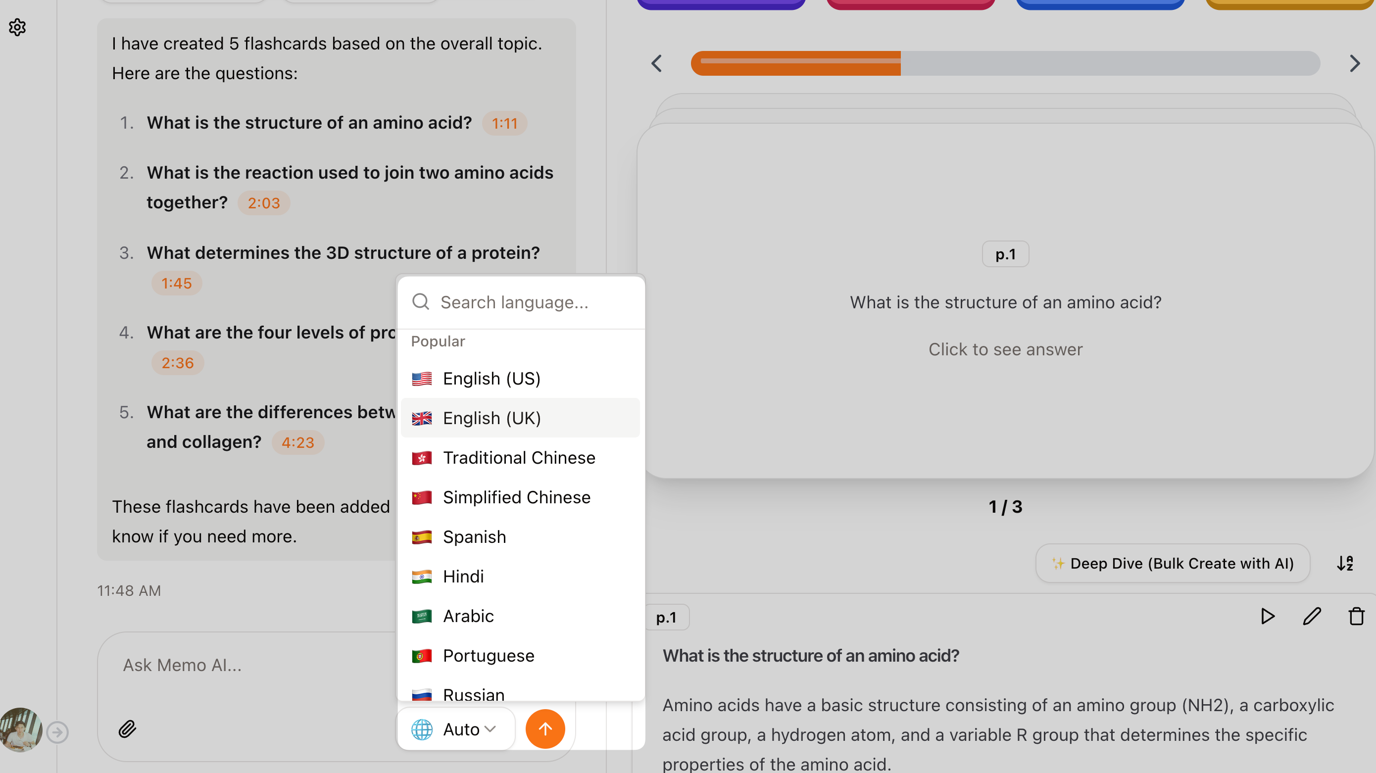 Besides from the new language dropdown - you can also simply as Feynman/Memo/Einstein to switch to your desired language midway through the conversation for some fun multilingual experiences. :)