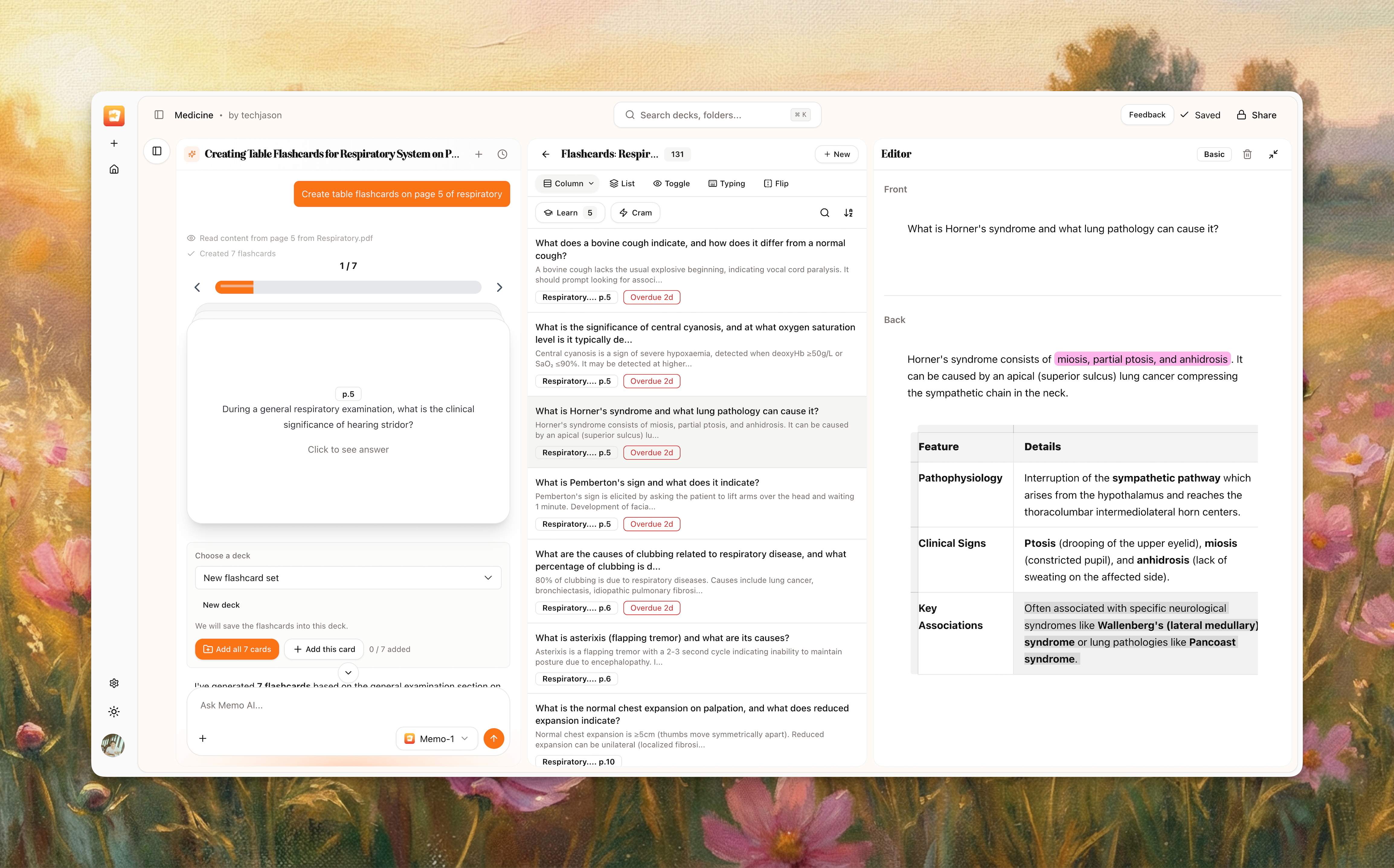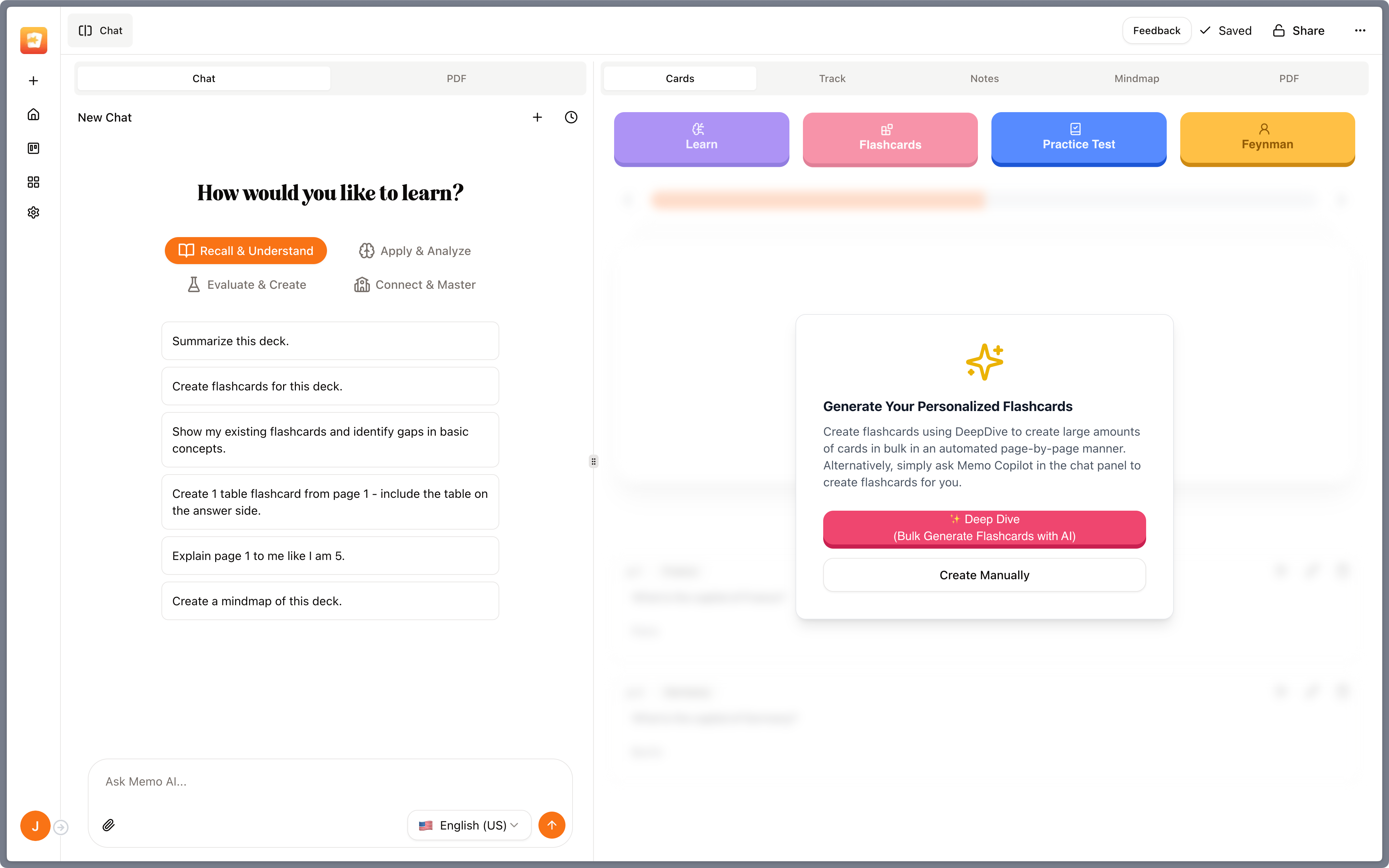 Memo now has improved MCQ generation and a new voice to text in learn mode. Here is a quick demo video: