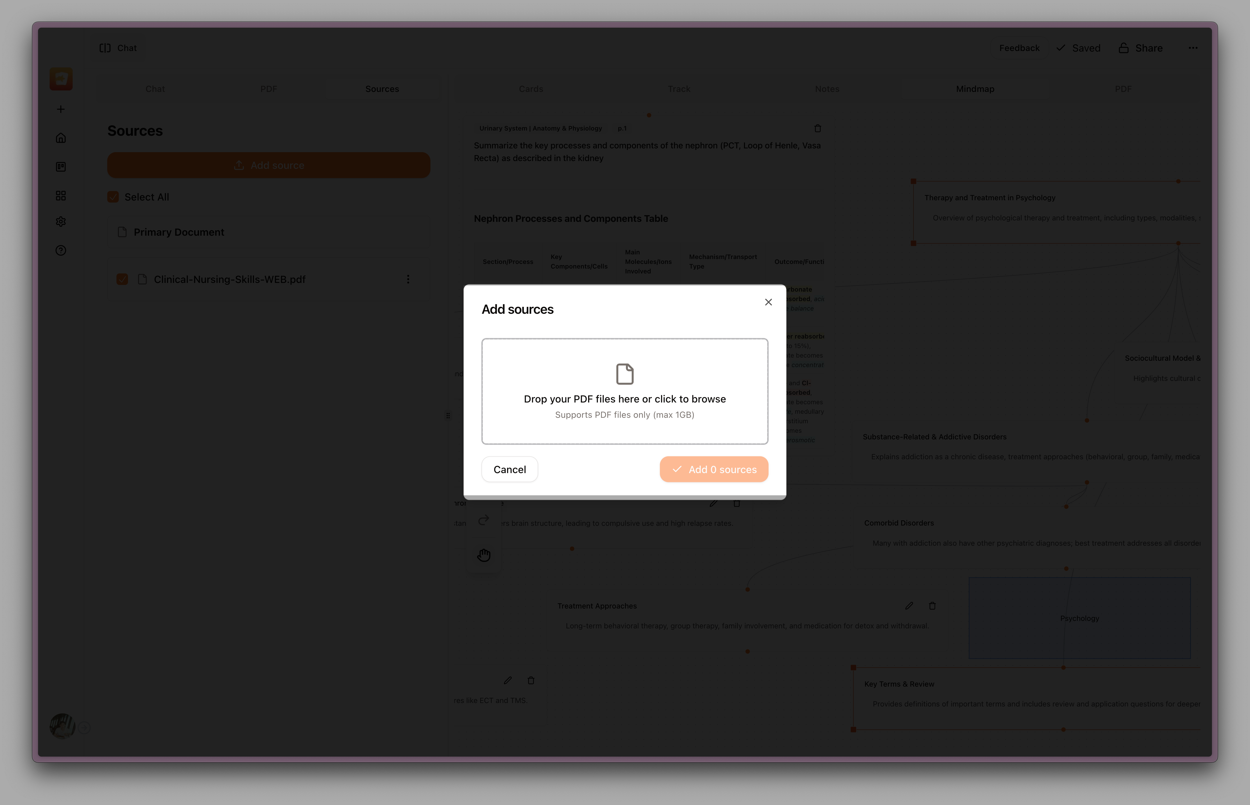 PDF sources — Faster scrolling for long documents, refined scroll and page modes, and fixes so citations and source badges open the viewer without jumping to the wrong page.
