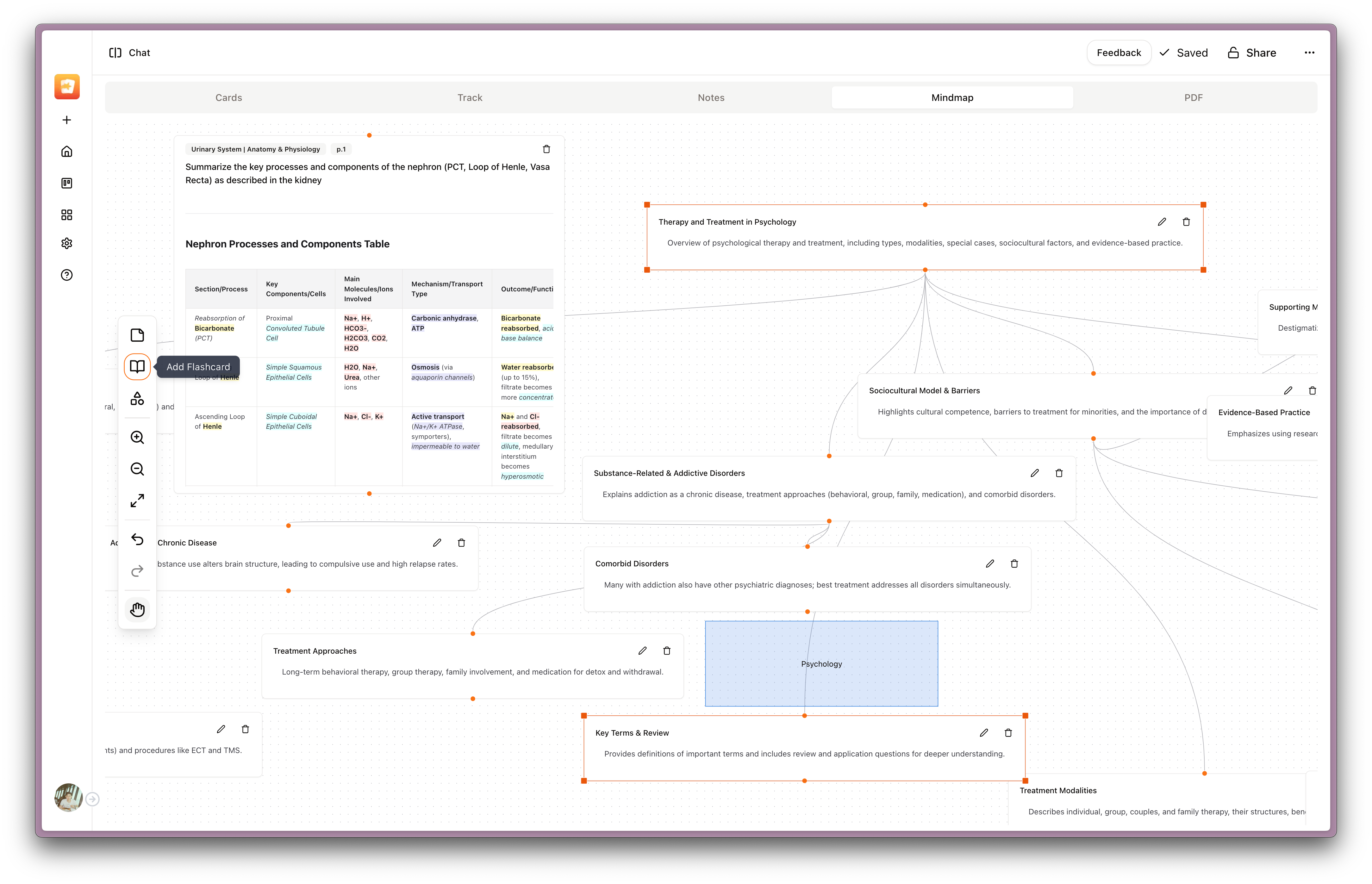 Whether you’re building a high-yield renal map or connecting pathology flashcards with treatment guidelines, each playground becomes a personal knowledge space.