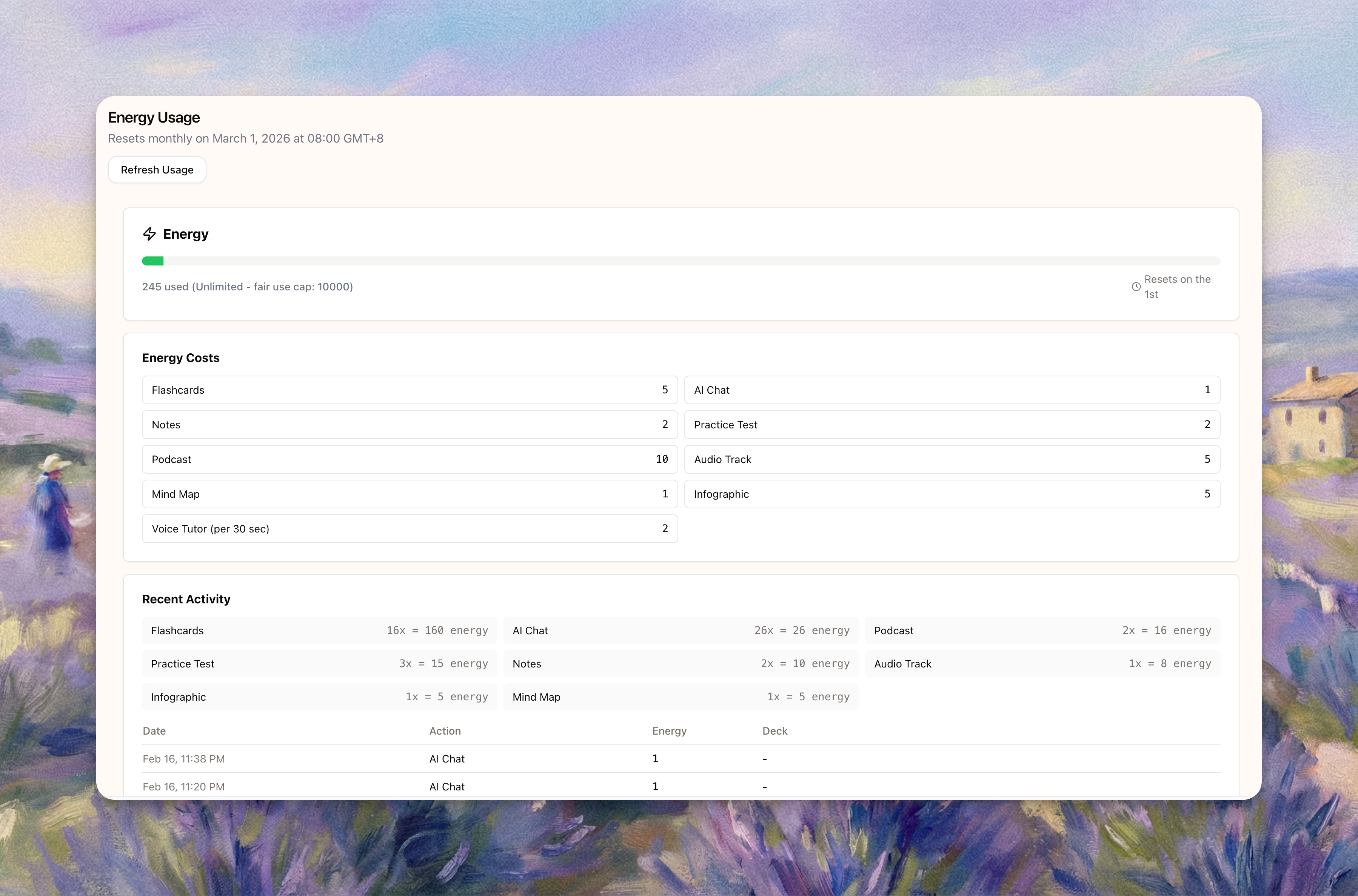 Added clearer energy usage visibility and improved usage feedback in the product.