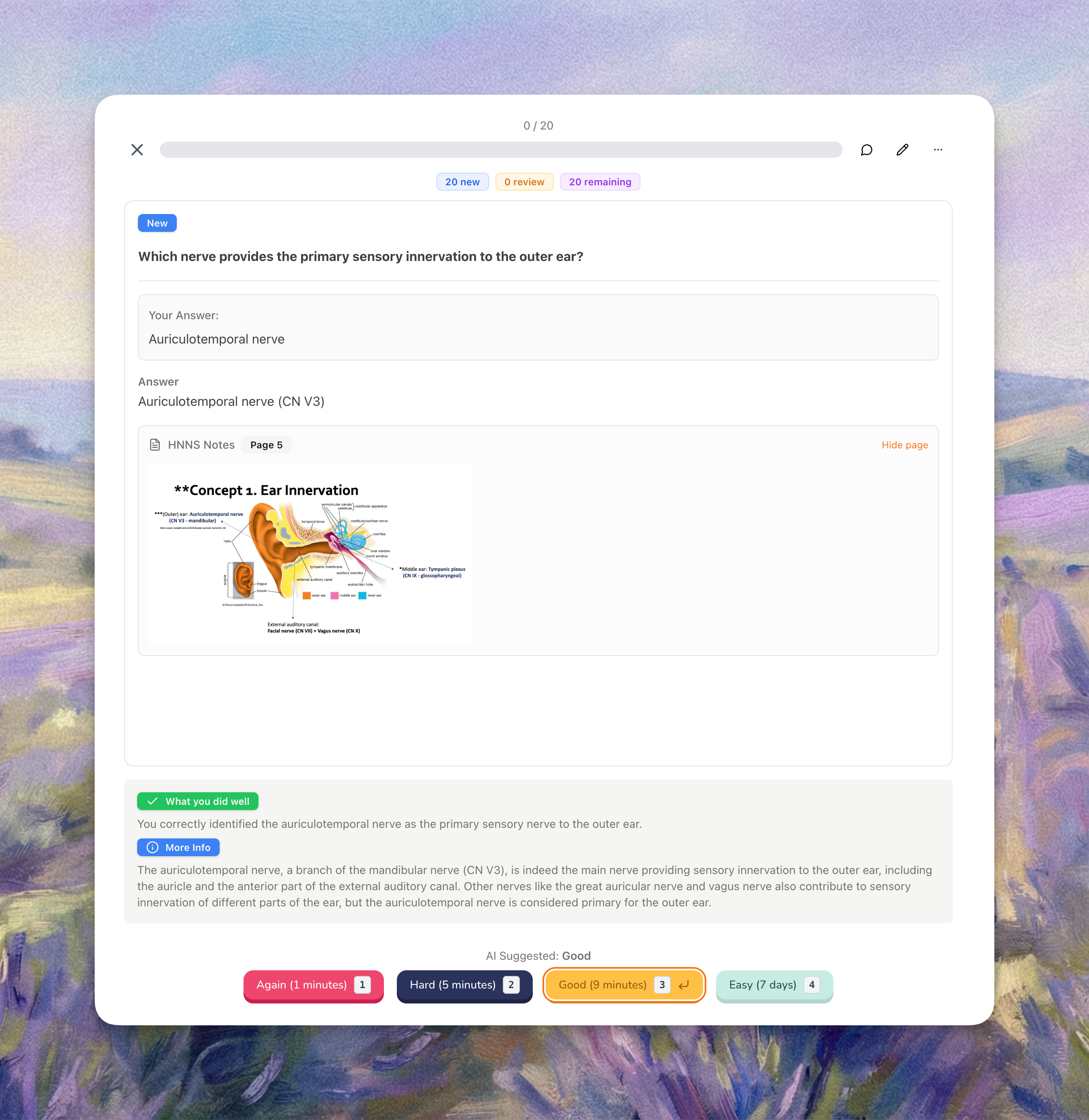 🎯 Stay on track: Follow a structured learning flow that breaks down your PDF source into sections and lessons - exactly like a Duolingo track but personalized to you.