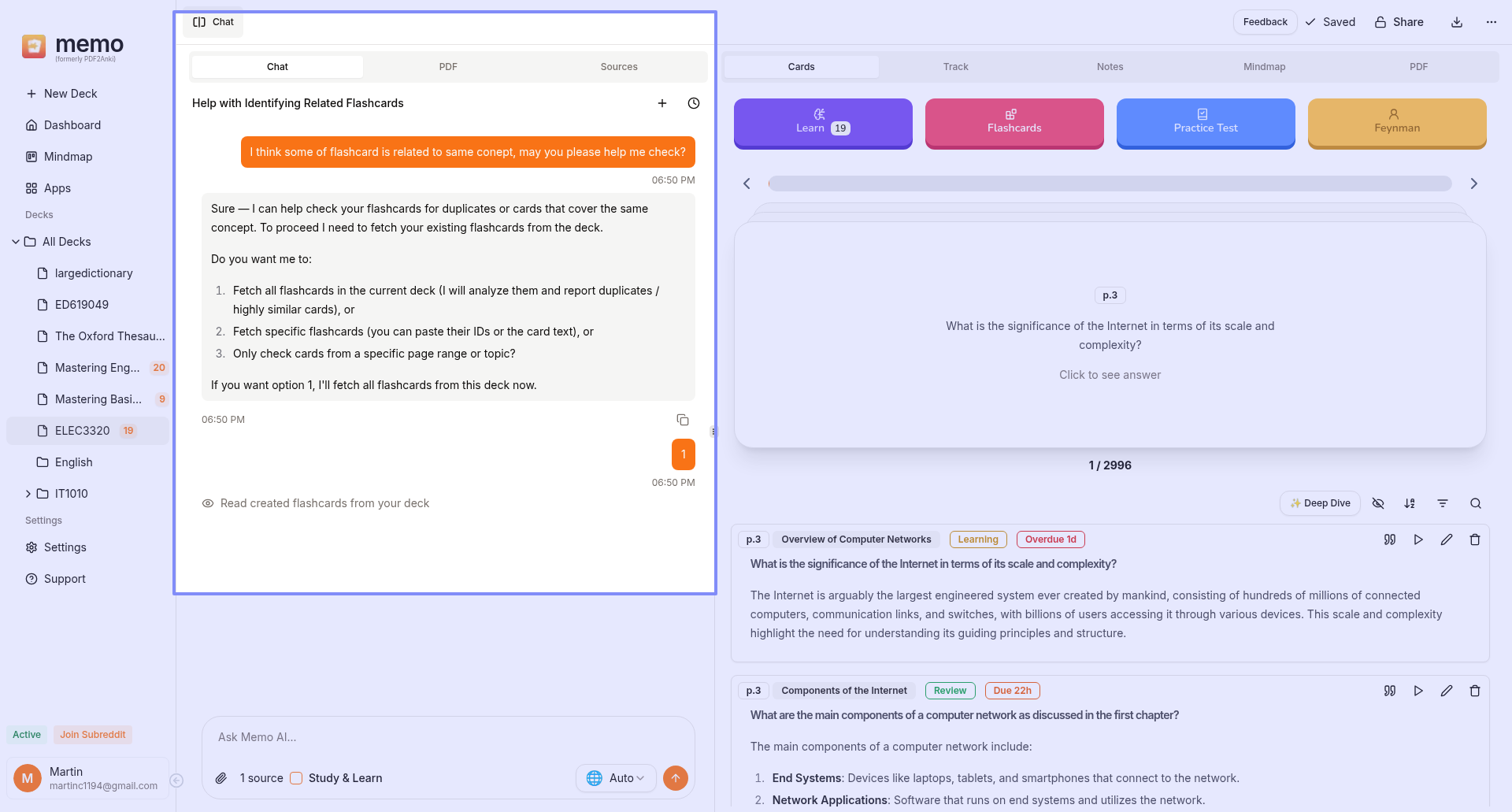我懷疑我太多卡(昨天生成了3000張卡),我叫AI查看我所有flash卡再找出他重覆生成的卡片,但AI沒法載入而卡住了。