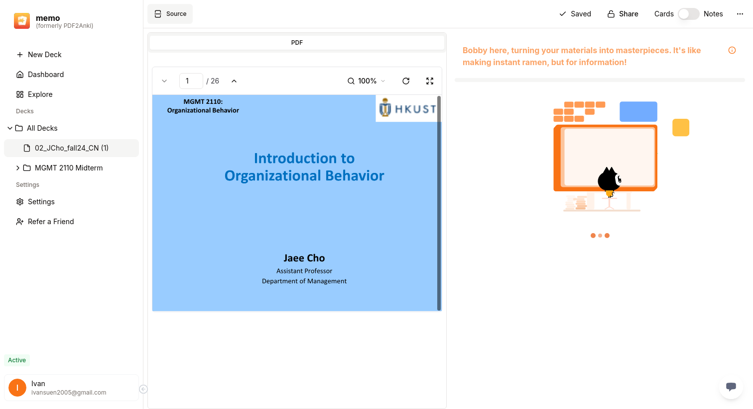 after importing my pdf, the flashcards are unable to be generated even after wating more than half an hour