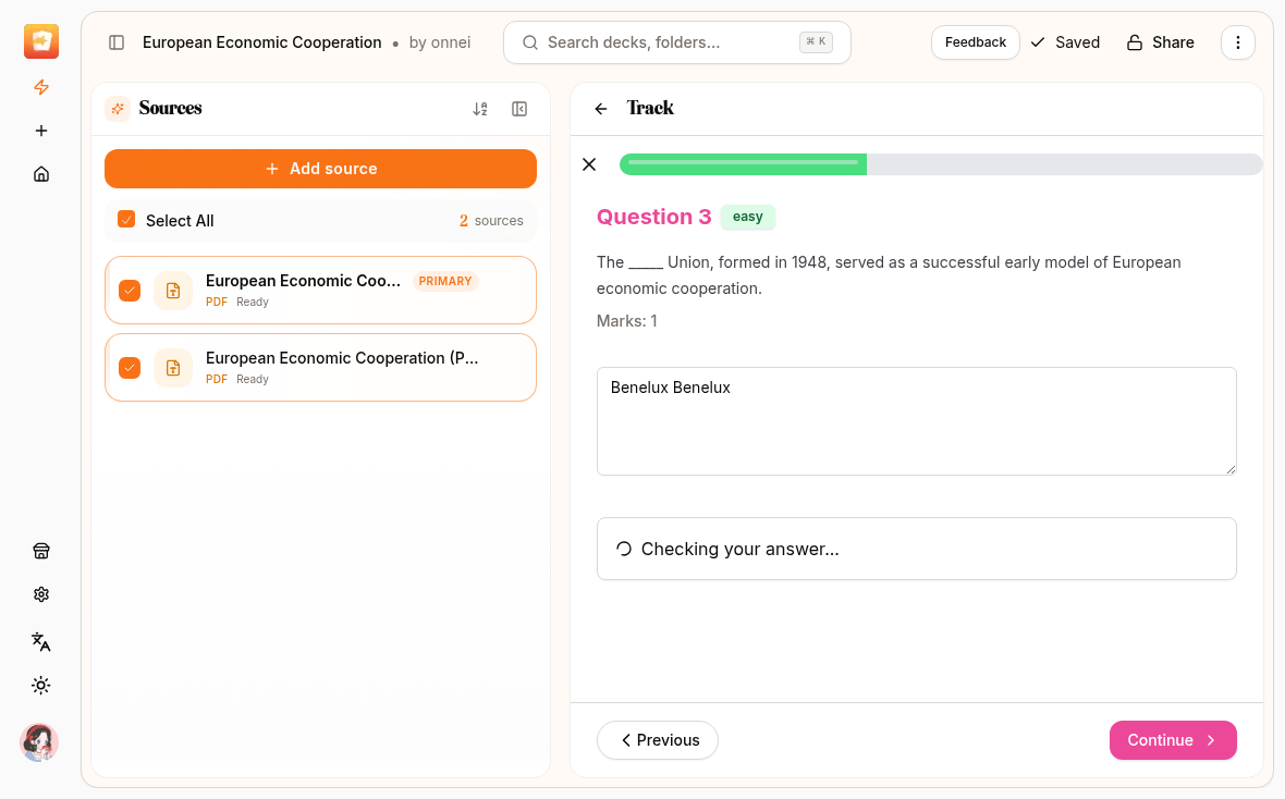 My track function is not working properly.Every time I type in my answer it takes forever to check